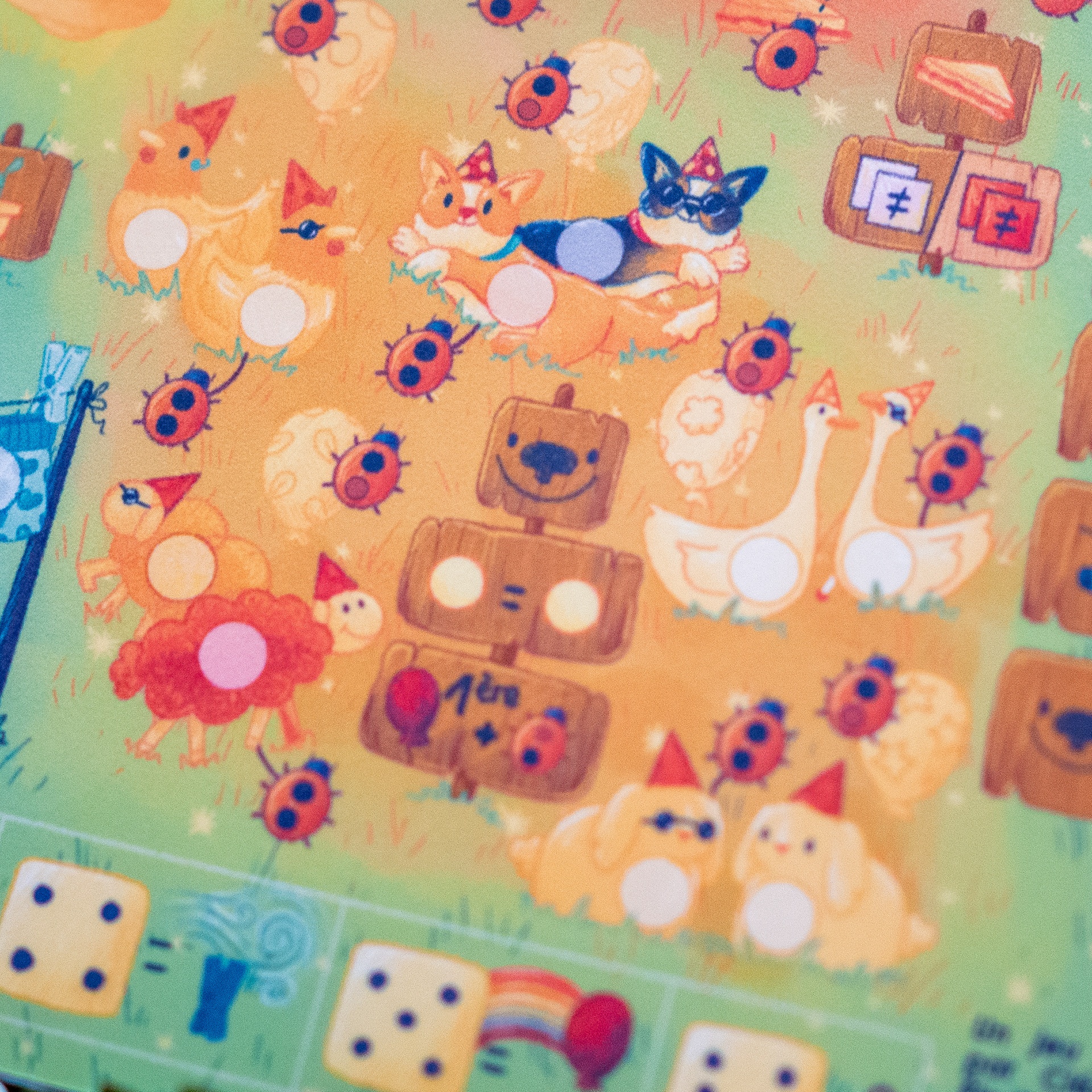 As part of their traditional Blague Friday, Philibert want, in 2024, to offer a game where all proceeds are donated to Accessijeux, an association that raises public awareness and offers board games for the visually impaired. Théo Rivière created a game for the occasion, to print at home. I made the illustrations, in a cosy spring theme.