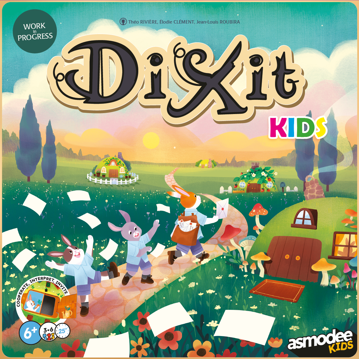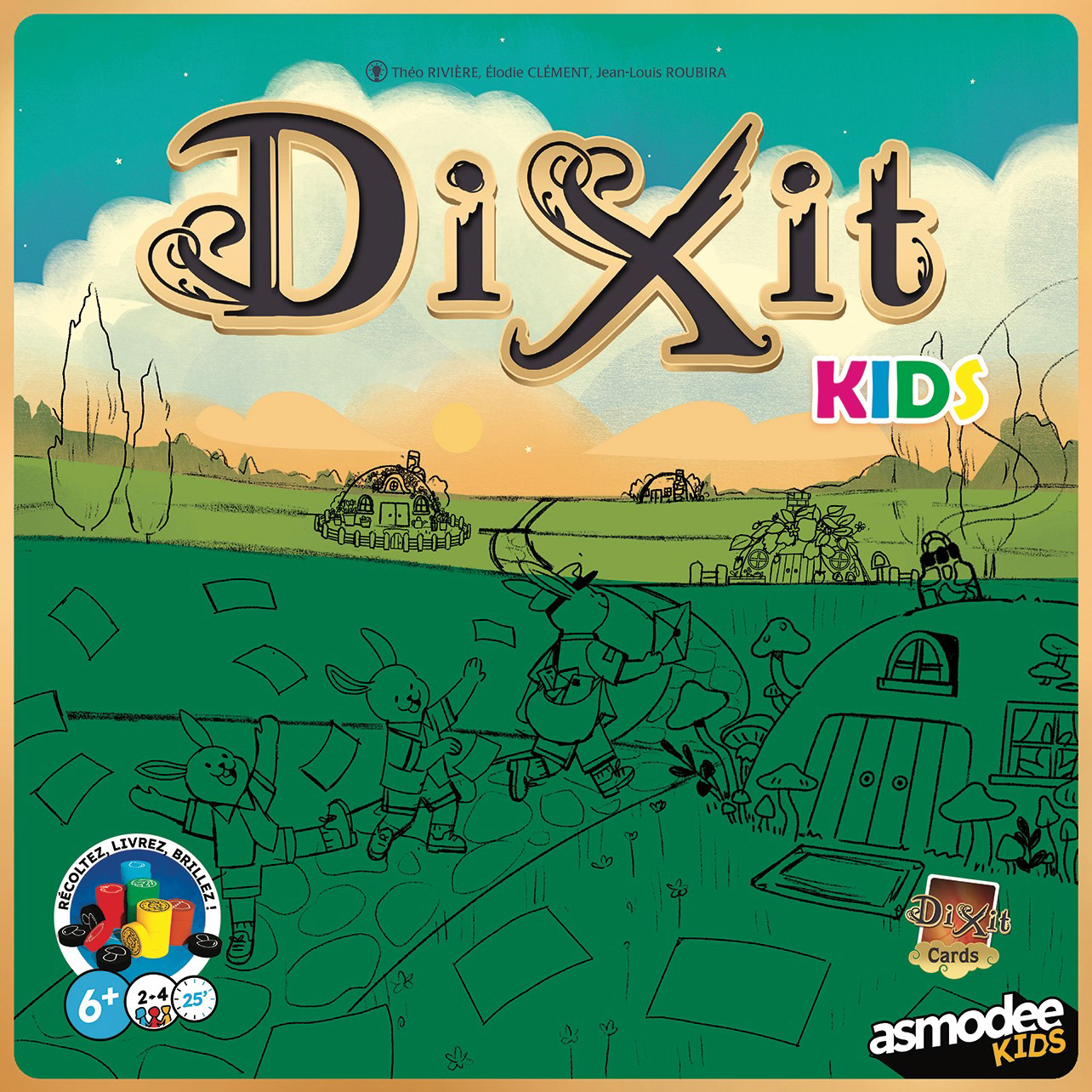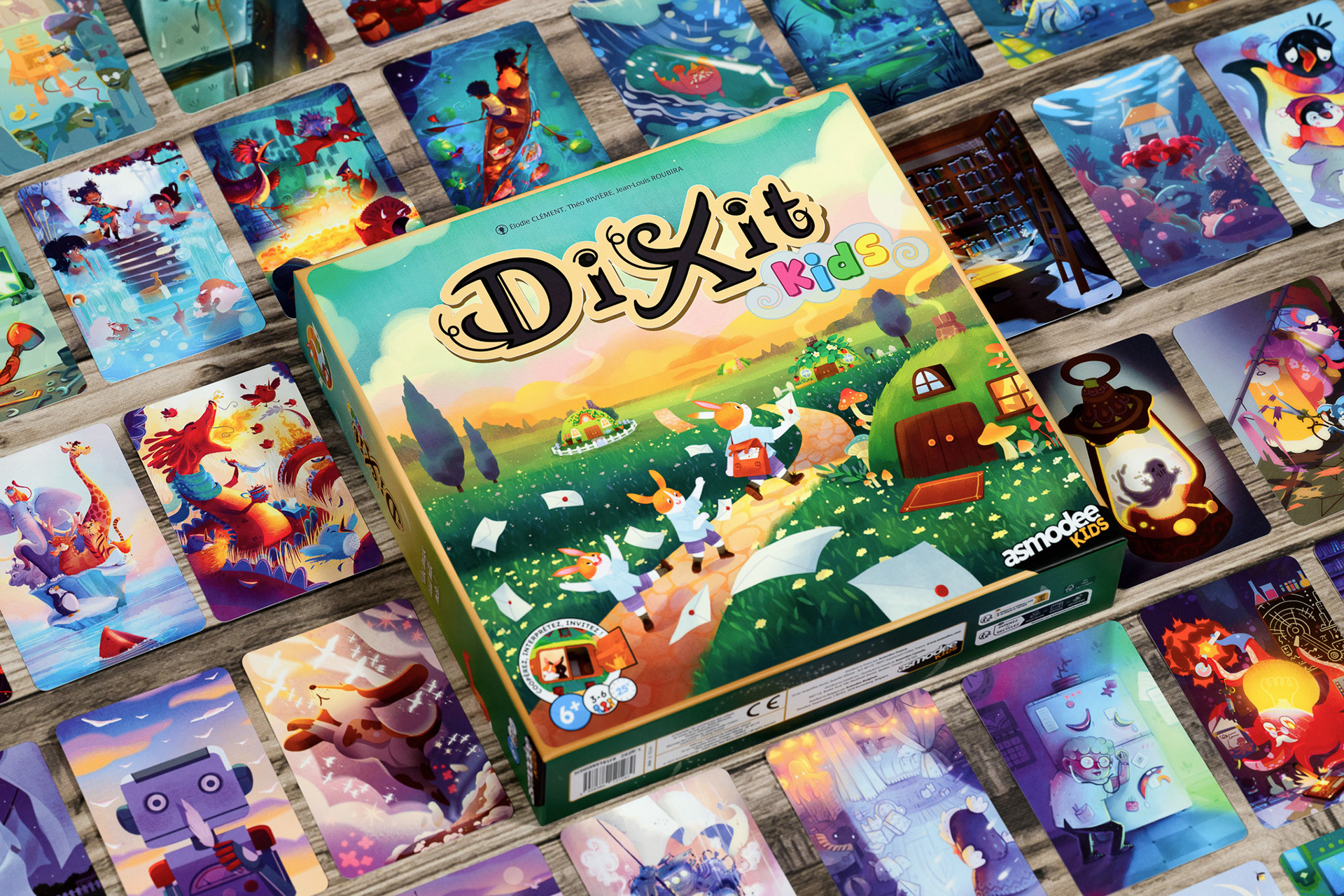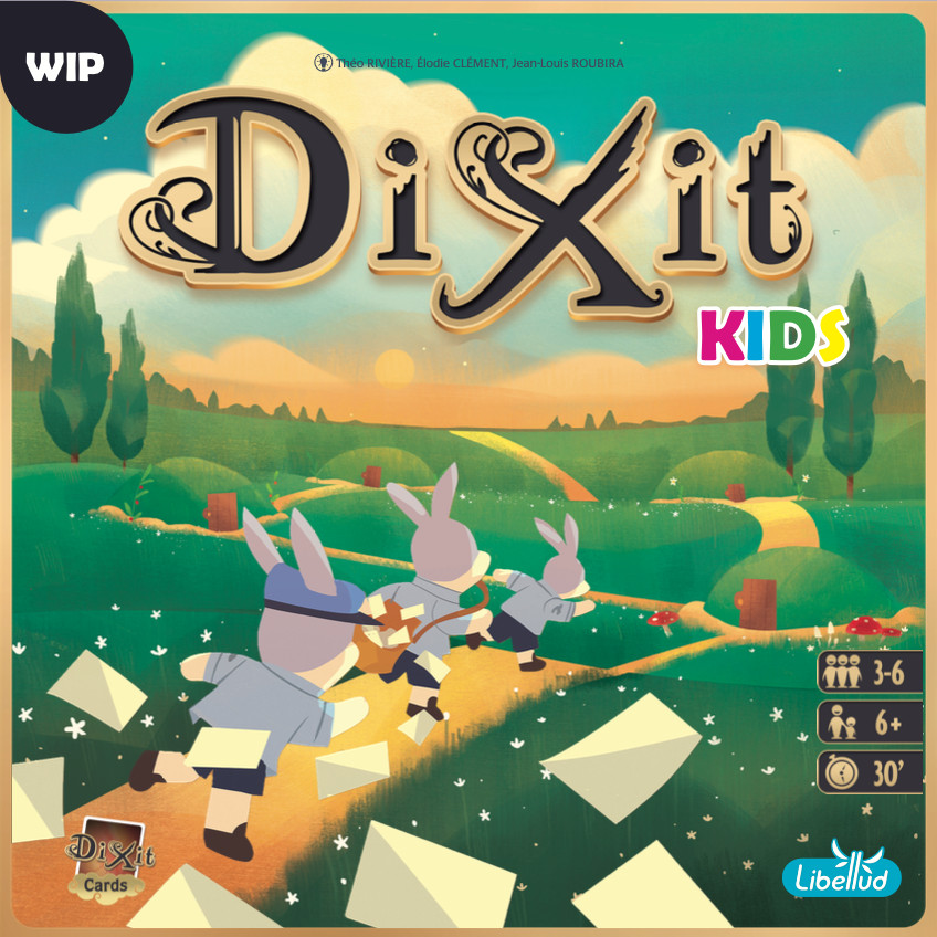 Dixit Kids is a game by Élodie Clément, Théo Rivière and Jean-Louis Roubira, illustrated by Seppyo (Mélanie Bardin), Lucie Dessertine, Emily (Seung Eun) Paik and Lemonjuiceday (Iris Winker). Initially developed by Libellud, the project evolved during a restructuring to become an Asmodee Kids production, carried out jointly by Libellud and Space Cow studios.