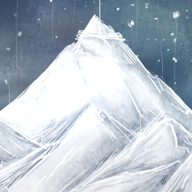 The icy and cold sumit receive the first thick winter snow... The dense coat fall onto the horizon bringing the white waxing cresent of the moon with it